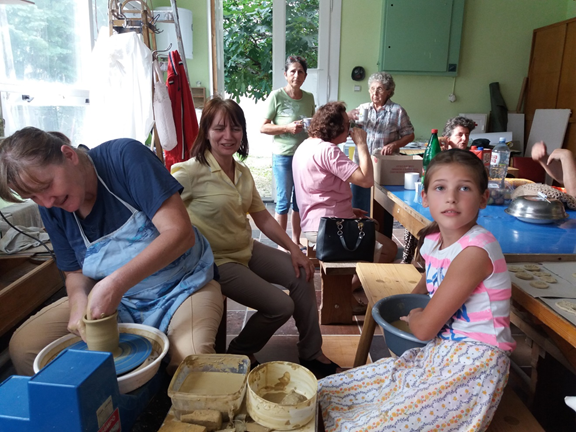 Az Alkotó Táborban még ezeken kívül népi fazekasság fortélyaiba is belekóstolhattak a gyerekek és a jelentkező tanulóknak beindítottuk az agyagozó foglalkozásokat. Kiss Katalin kismesterség szakoktató vezetésével a népi fazekasság alapismereteit tanulják az érdeklődők. A Tartományi Oktatási Jogalkotási Nemzeti Közösségi Nemzeti Kisebbségi Titkárság pályázatán korábban vásárolt elektromos korongon sajátíthatták el a tálak, bögrék készítésének ezt a módját.Van lehetőség az agyag formázás, mázazás, többféle megmunkálás kipróbálására is kis csoportos foglalkozásonkon: Nyári nagy rendezvényünkről, az Alkotótáborról, amely a zentai Halász Csárdán 2021. július 16–18 között a szabadkai Pannon Rádió és TV és az újvidéki RTV sajtó, és média tájékoztatott. A Magyar Szó napilapban megjelentek újságcikkek: Puskás Ferenc fafaragó